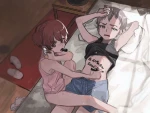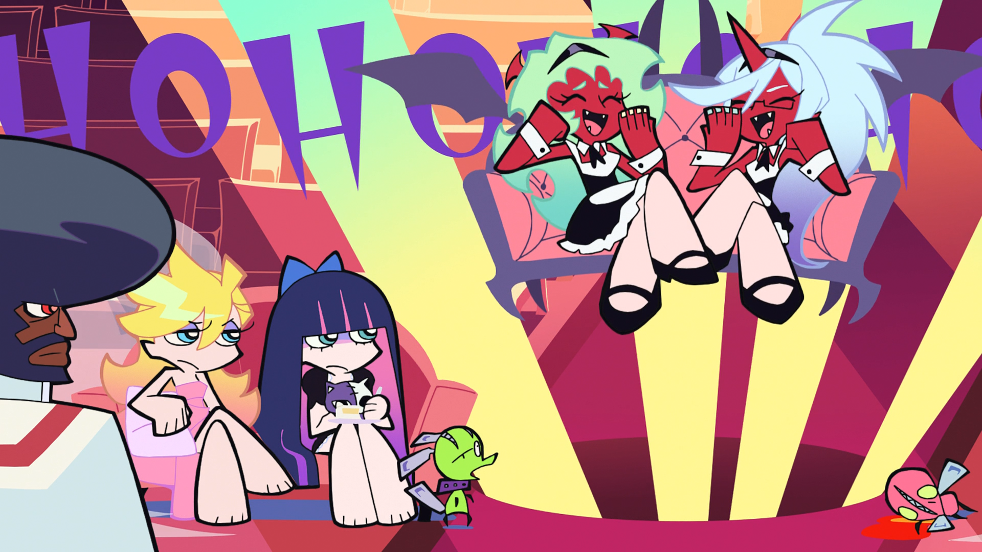 girls squirming in the laps of girls while at a movie theater