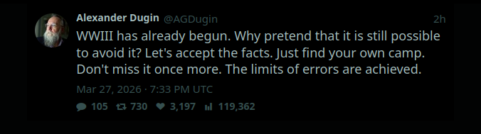 mostly because of 4 years of duginism and related stances, and everyone associated with him being reasonable until they get the word from him and suddenly see the light.