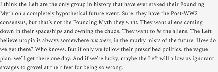 Light pollution has done a number on human psychology I suspect. It's hard to get a modern to even pretend to try to understand classical mythology when they can't even see constellations and planets in the sky