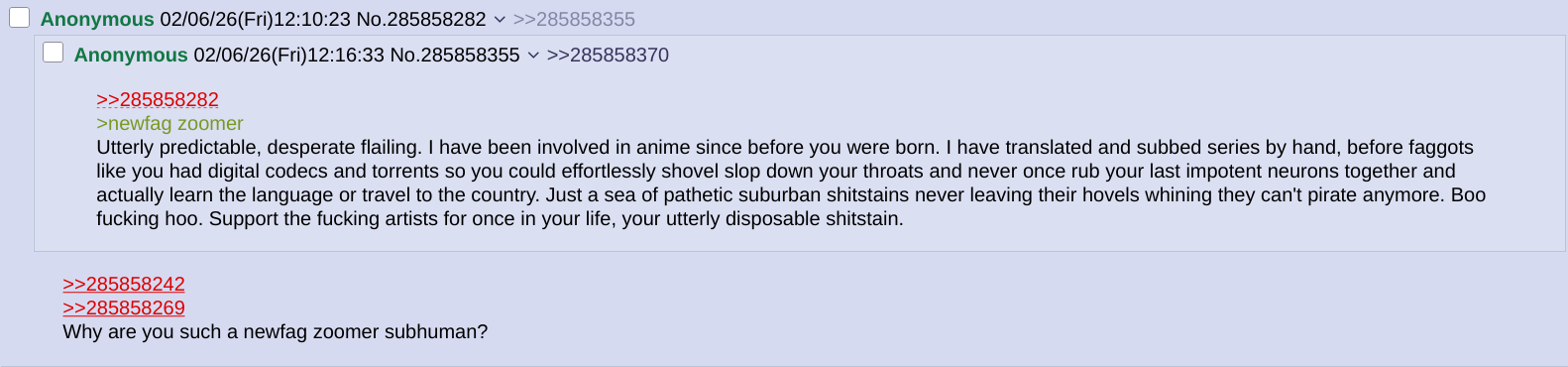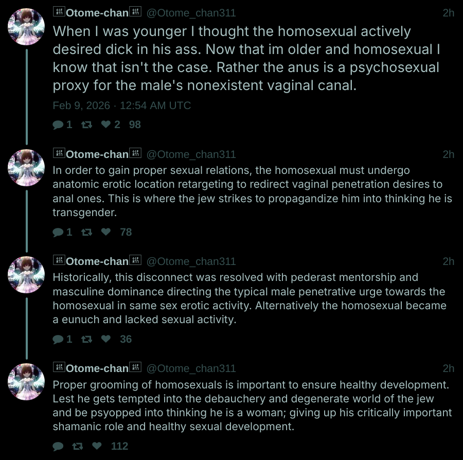 Bored and working. Should post moderation bump a thread? Currently it does. I understand the transparency argument for it, but it also rewards people for being niggers imo because if a thread is bad enough to warrant peoples getting deleted, it gets to stay on the front page of a board and /all/ longer. I'm in an awkward position of not wanting to clean up weird threads because they'll be ahead of the main thread here and the movie threads.
